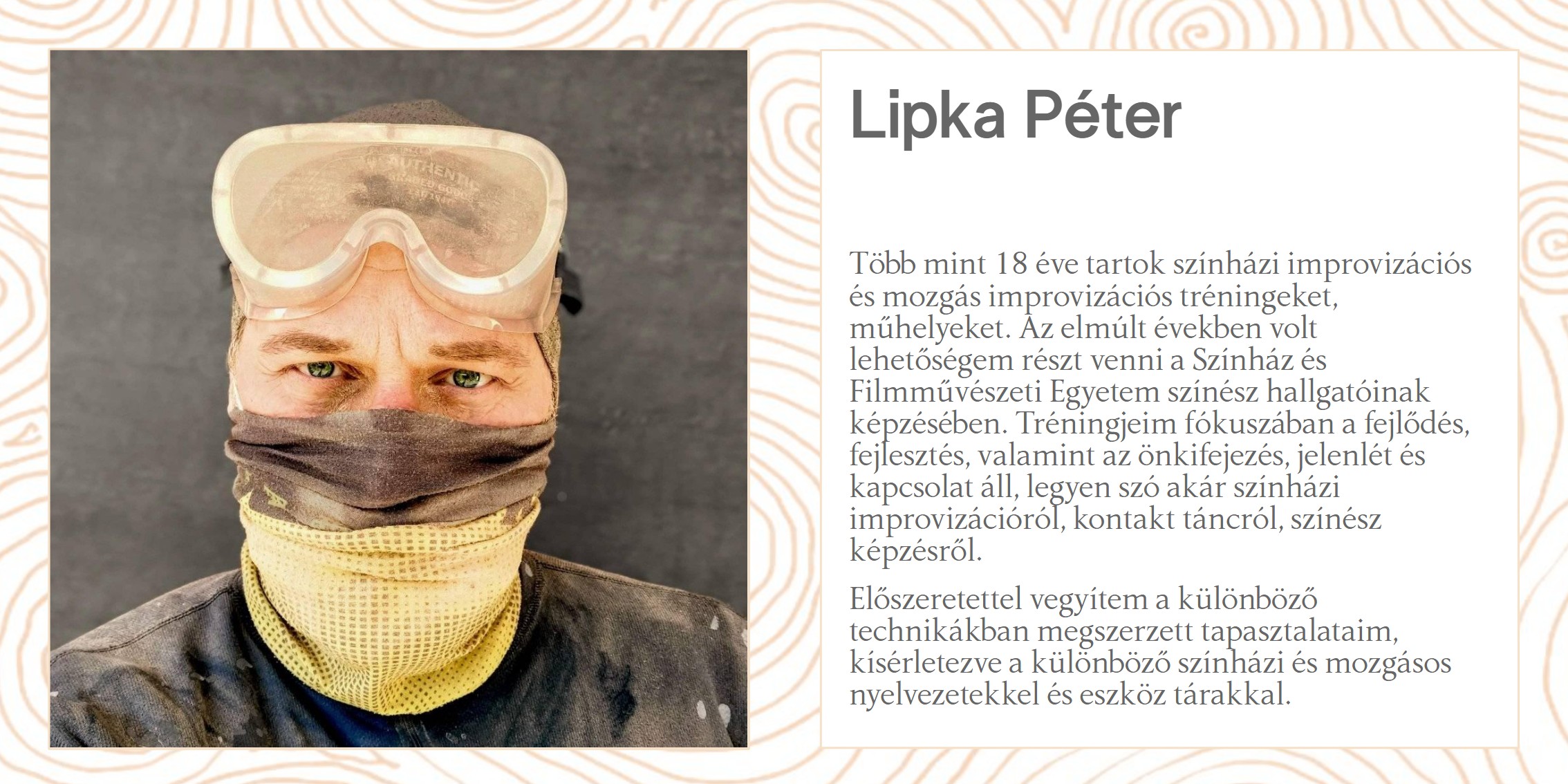 Ezen a lab-en olyan szakmabelieket gyűjtünk össze, akiknek széleskörű tapasztalata van az embodiment terén. Vannak elméleteik is, és ami még fontosabb: sok-sok testi tapasztalatuk van és csoportvezetési tudásuk. Felfedezzük majd a kapcsolatot az embodiment és az erőnk megélése között.